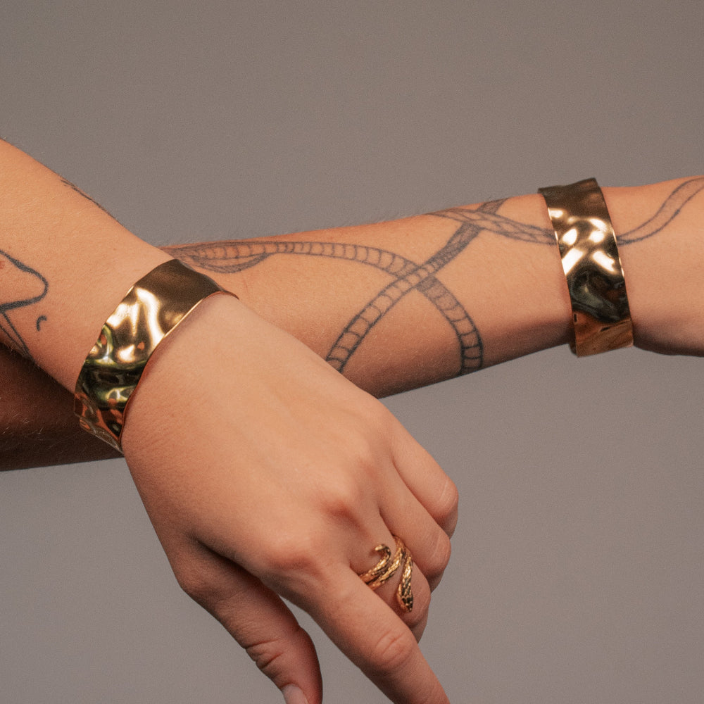 Thoughtfully crafted 18k gold plated pieces designed for daily wear. Finished with PVD bonding over a stainless steel base for a durable shine that’s waterproof and tarnish free. Nickel free and hypoallergenic for skin-friendly comfort.